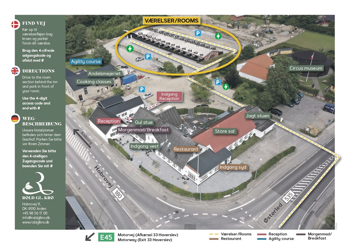 Både plads til overnattende festgæster, den gennemrejsende, håndværkere og sportsudøvere. Kroen er beliggende klos op ad den naturskønne Rold Skov i Nordjylland, hvor du bla. finder vandreruter og mountainbike trails. Hunde skal føres i snor i skoven